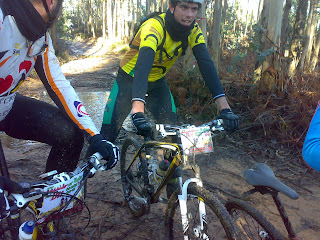 Mais uma vez lá fomos á procura de novos trilhos com 3 dos elementos que compoêm o grupo(Miguel Lopes,Lino Brito e Victor Pinto. Fomos até á freguesia de Sepins(Mealhada) á descoberta da famosa 4ª maratona de Sepins. Apesar de irmos tristes por ainda não mostrarmos as nossas cores com o nosso verdadeiro equipamento(que estará por aí a rebentar)lá fomos. Esperava-nos um terreno bastante duro devido a tanta lama que por lá havia. Saimos muito atrasados, eram bastantes bttistas inscritos para esta maratona(850),no qual ja tinham feito o crontolo 0. Deu-se a largada e foi um tal galgar terreno até encostarmos ao gupo da frente, eram tantos que até dava gosto ultrapassá-los. Correu tudo como de previsto, sem malhos e com muita lama.